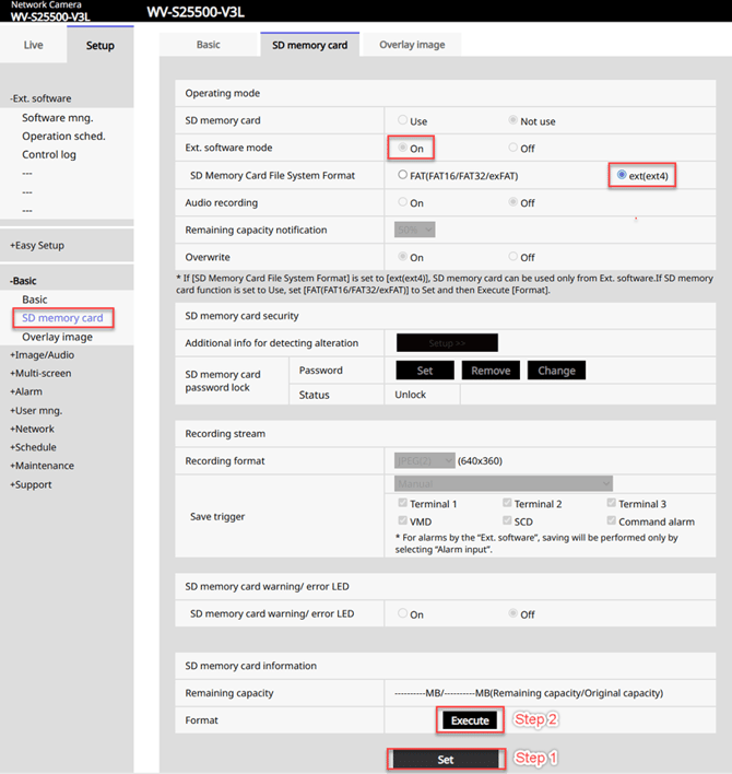 - Go to "Basic -> SD Card"