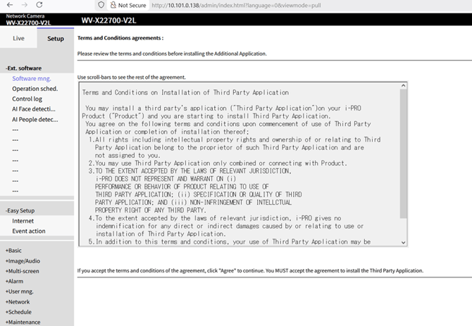 - Accept the i-PRO terms agreement